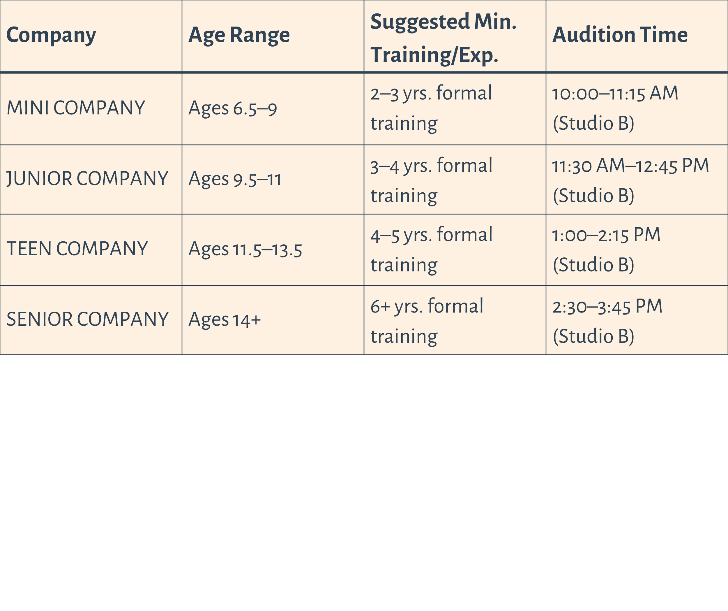 Company Audition Schedule: